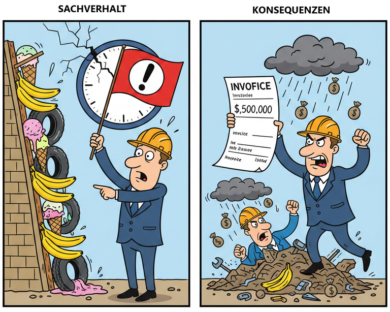 Zudem riskiert er eine Minderung des Werklohns und kann für Verzögerungen schadenersatzpflichtig werden.